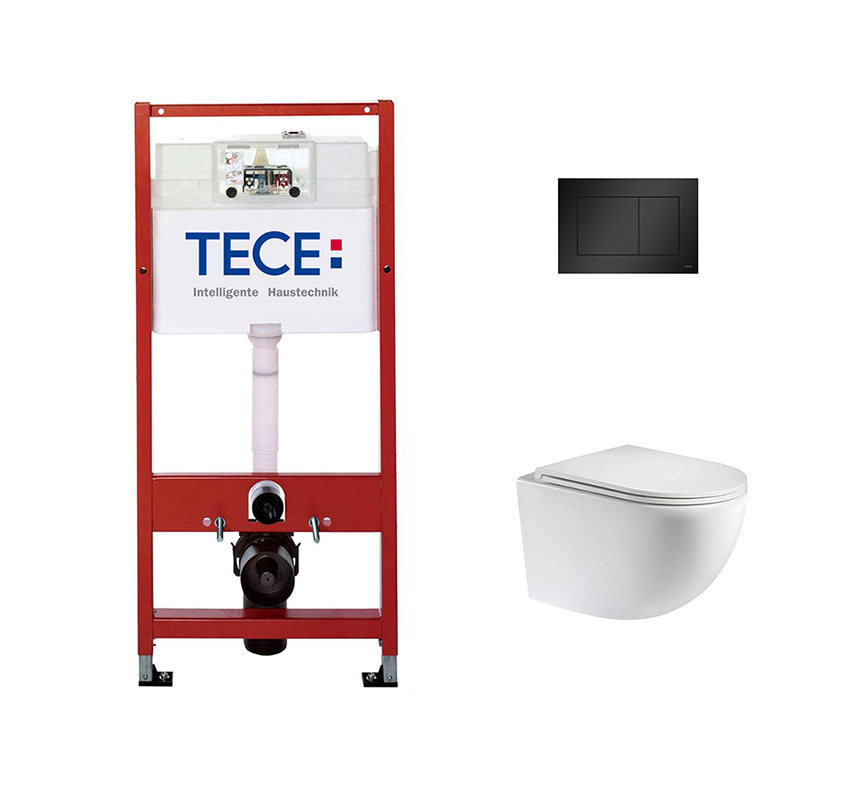 Комплект инсталляции TECEbase 9400407 с чёрной кнопкой и унитазом Teymi Lina VORTEX T40110
