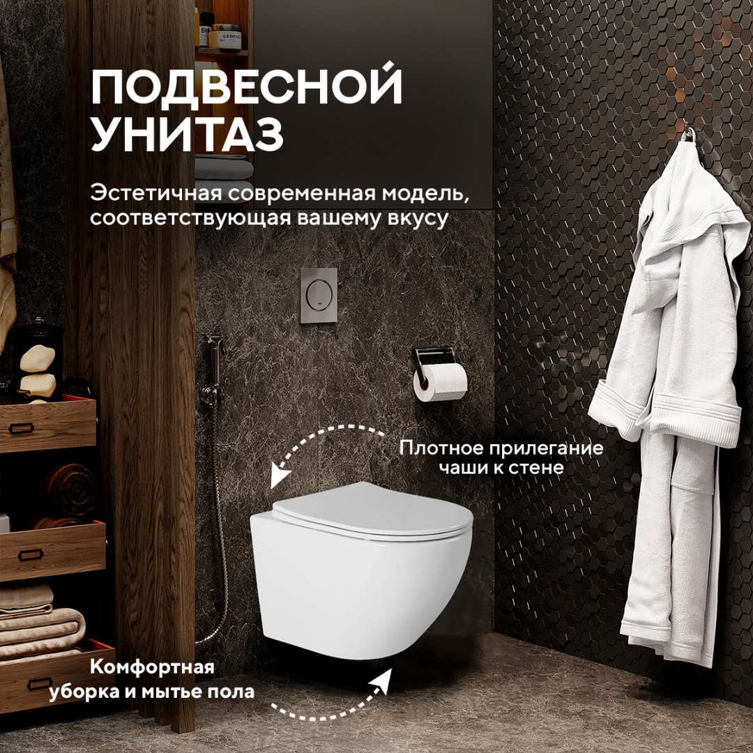 - Унитаз подвесной Amore di Mare Delio P203, с крышкой дюропласт SoftClose.