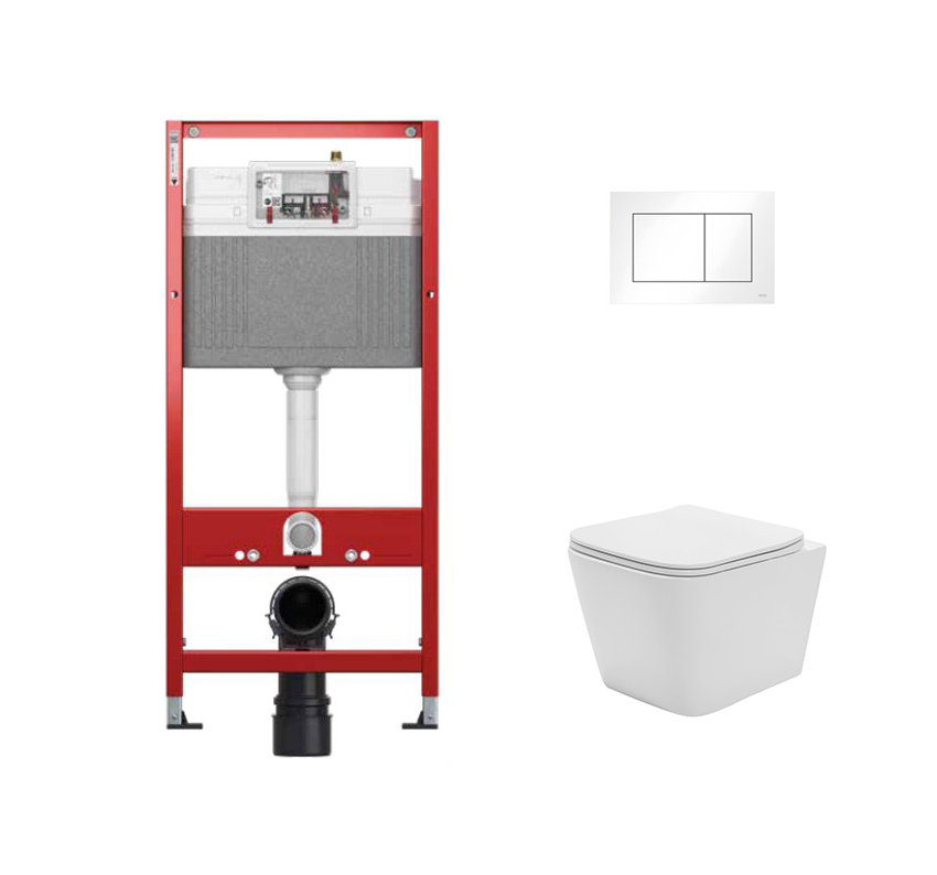 Комплект инсталляции TECEbase 9400413 с белой кнопкой и унитазом Lekvo T-202