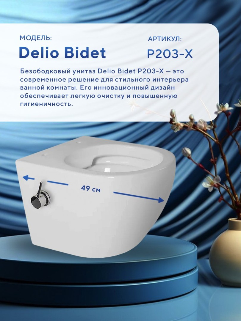 - Унитаз подвесной Amore di Mare Delio Bidet P203-X, с крышкой дюропласт SoftClose.