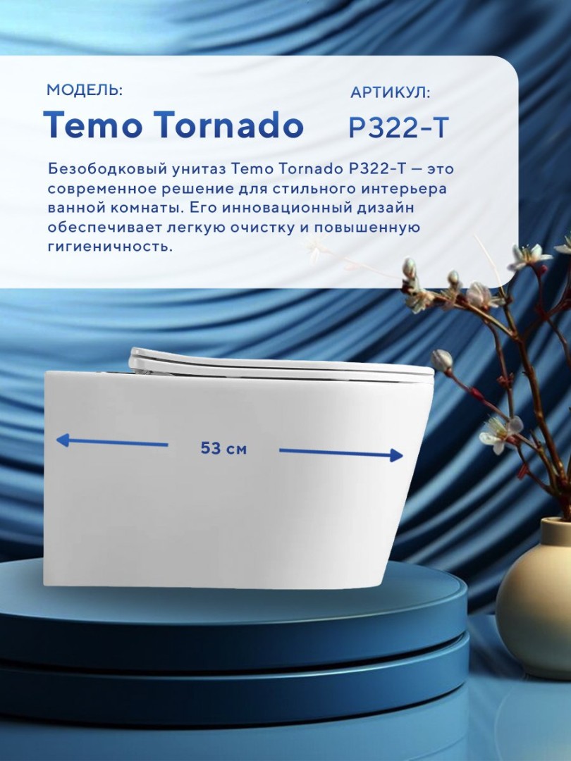 - Унитаз подвесной Amore di Mare Temo Tornado P322-T, с крышкой дюропласт SoftClose.