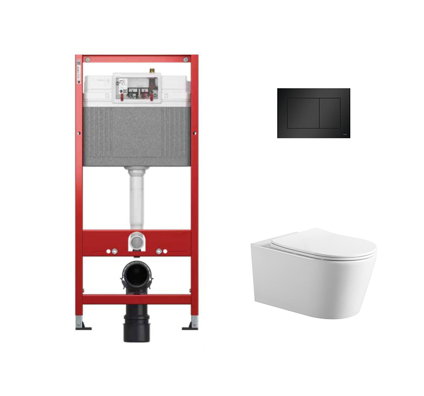 Комплект инсталляции TECEbase 9400414 с чёрной кнопкой и унитазом Amore di Mare Temo Tornado