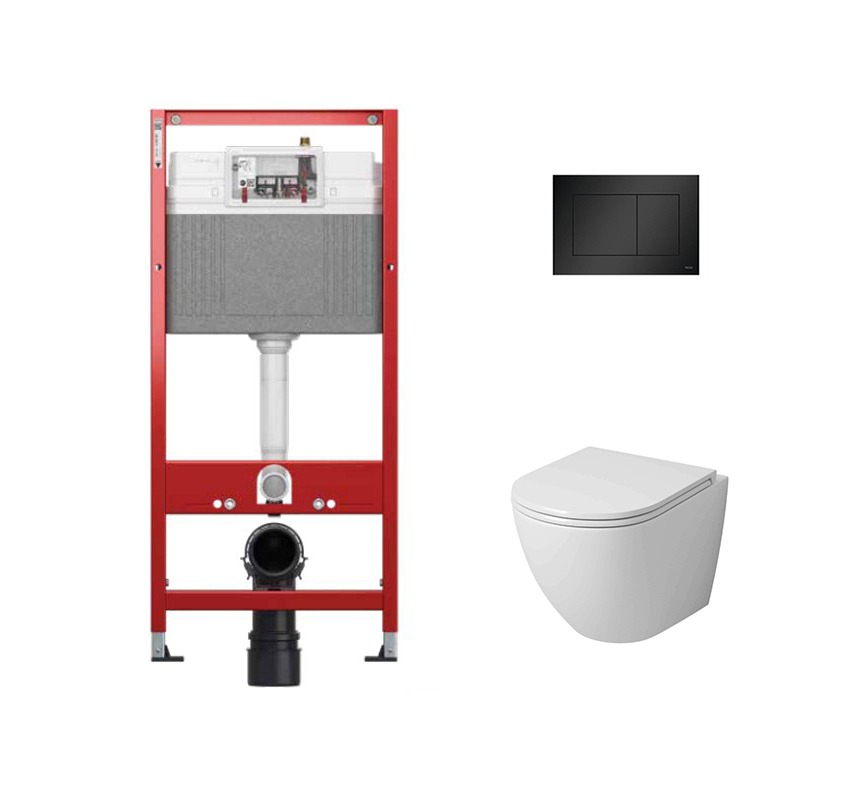 Комплект инсталляции TECEbase 9400414 с чёрной кнопкой и унитазом Grossman GR-4455SQ