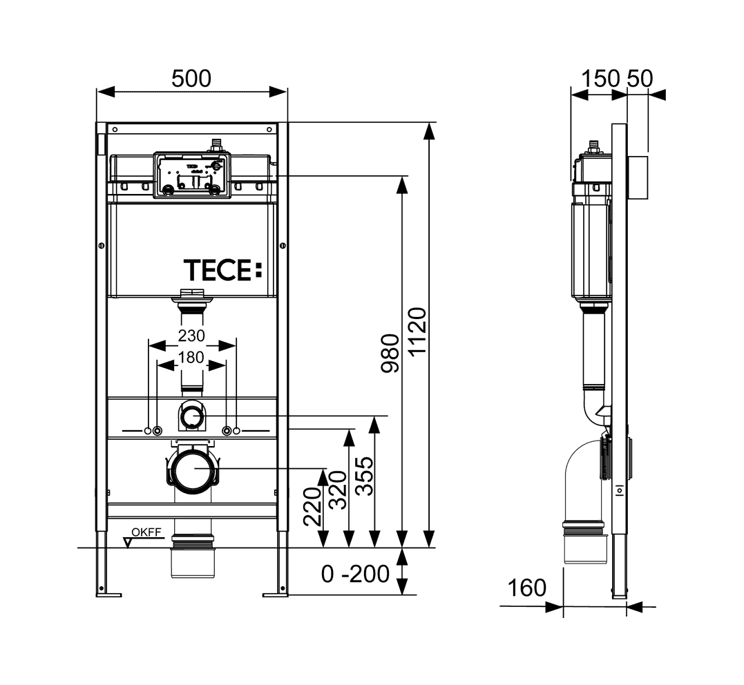 - Застенный модуль TECEbase New - размер застенного модуля: 112x50x16 см.