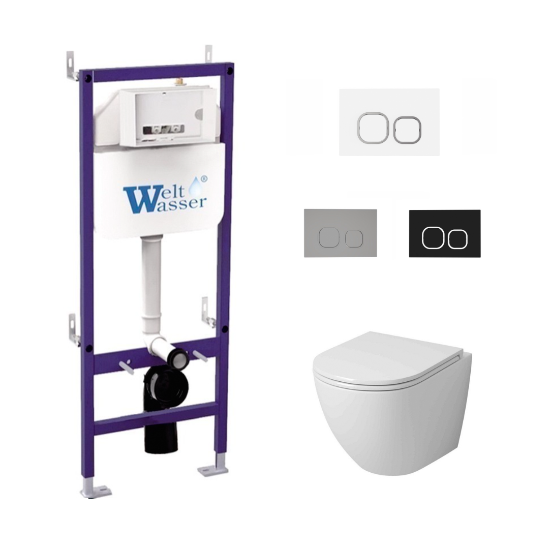 Комплект инсталляции WeltWasser Bamberg 460 с белой кнопкой и унитазом Grossman GR-4455SQ