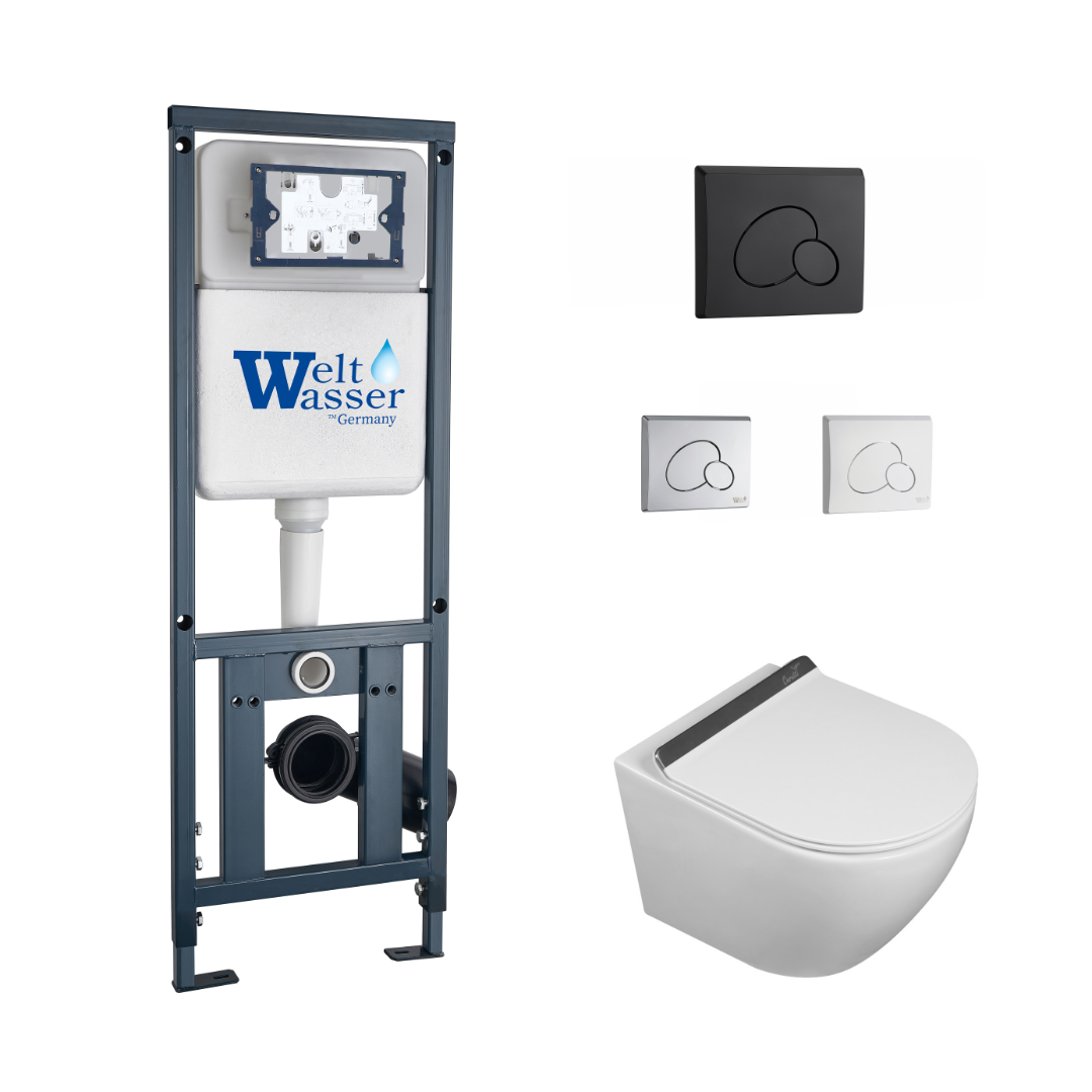 Комплект инсталляции WeltWasser Marberg 410 RD с чёрной кнопкой и унитазом Cerutti Sella Aria Tornado Plus