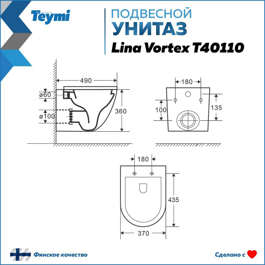 Подвесной унитаз Lina Vortex T40110 от известного финского бренда Teymi – это модное решение для современного санузла. Унитаз изготовлен из высококачественного санфарфора - прочного и долговечного материала, который устойчив к сколам и внешним повреждениям, а поверхность отличается особой гладкостью, что значительно облегчает смыв.