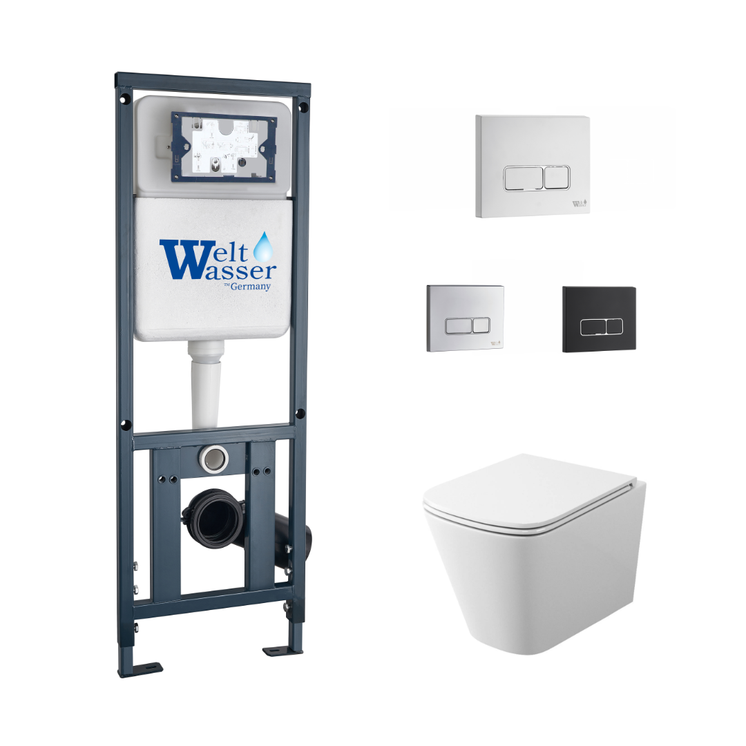 Комплект инсталляции WeltWasser Marberg 410 SE с белой кнопкой и унитазом Teymi Helmi S T40302
