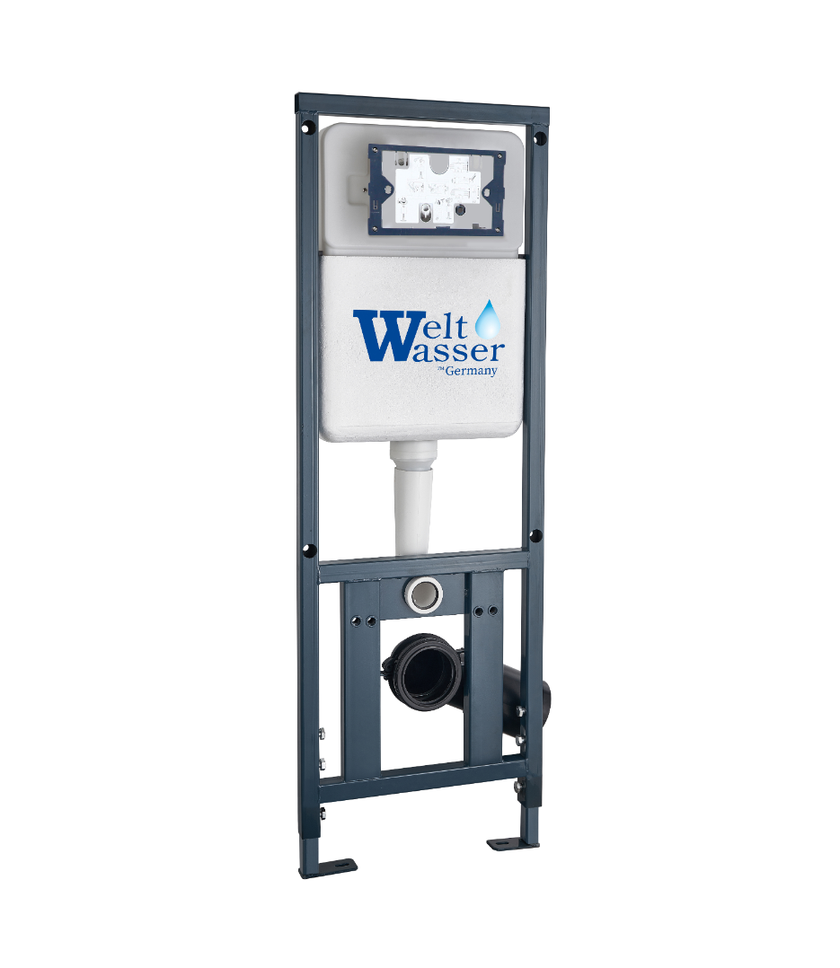 - Монтажная рама + бачок + кнопка смыва + уплотнитель.