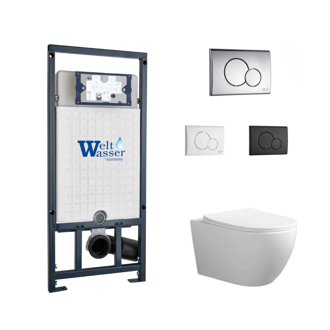 Комплект инсталляции WeltWasser Marberg 507 RD с кнопкой хром и унитазом Cerutti ORLTER Aria Tornado