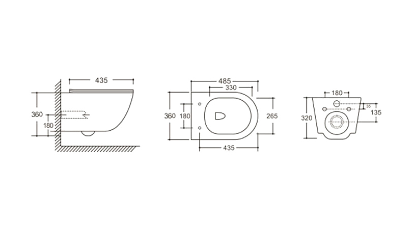 - Межосевое расстояние под крепёж унитаза 18 и 23 см.