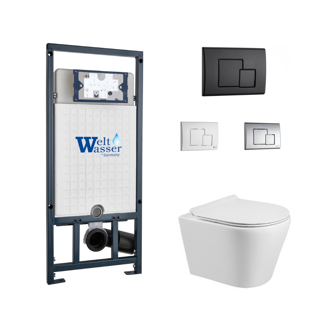 Комплект инсталляции WeltWasser Marberg 507 SE с чёрной кнопкой и унитазом Alpen A01S
