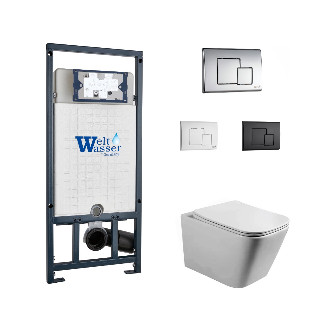Комплект инсталляции WeltWasser Marberg 507 SE с кнопкой хром и унитазом Alpen A05S