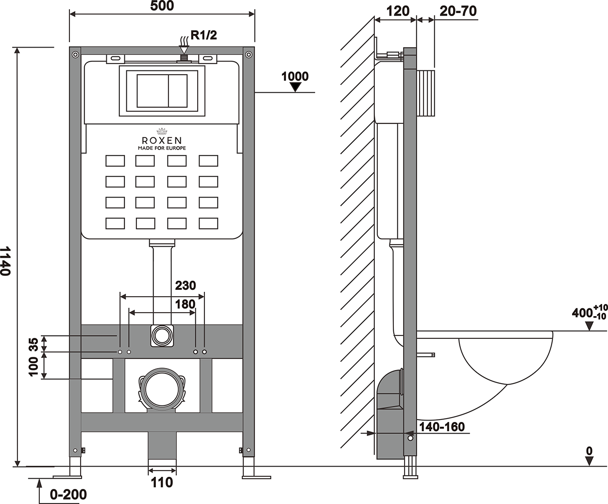 - Система инсталляции для унитаза Roxen StounFix Slim 710200.