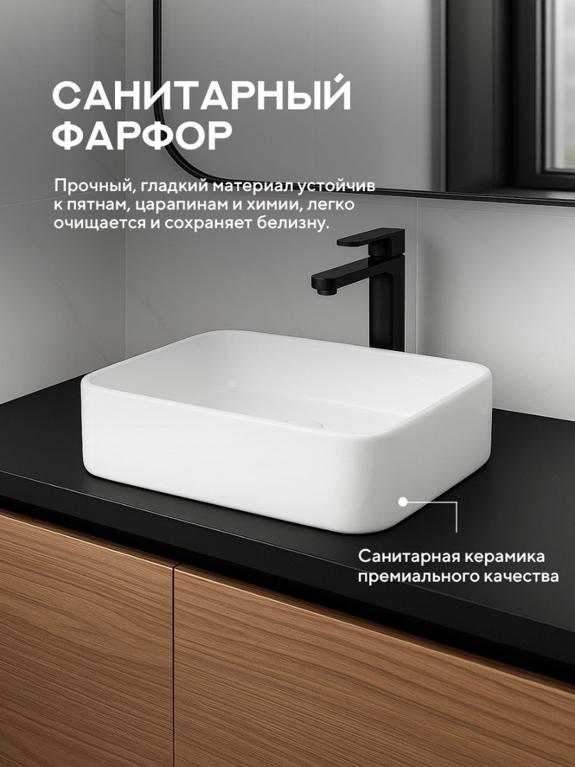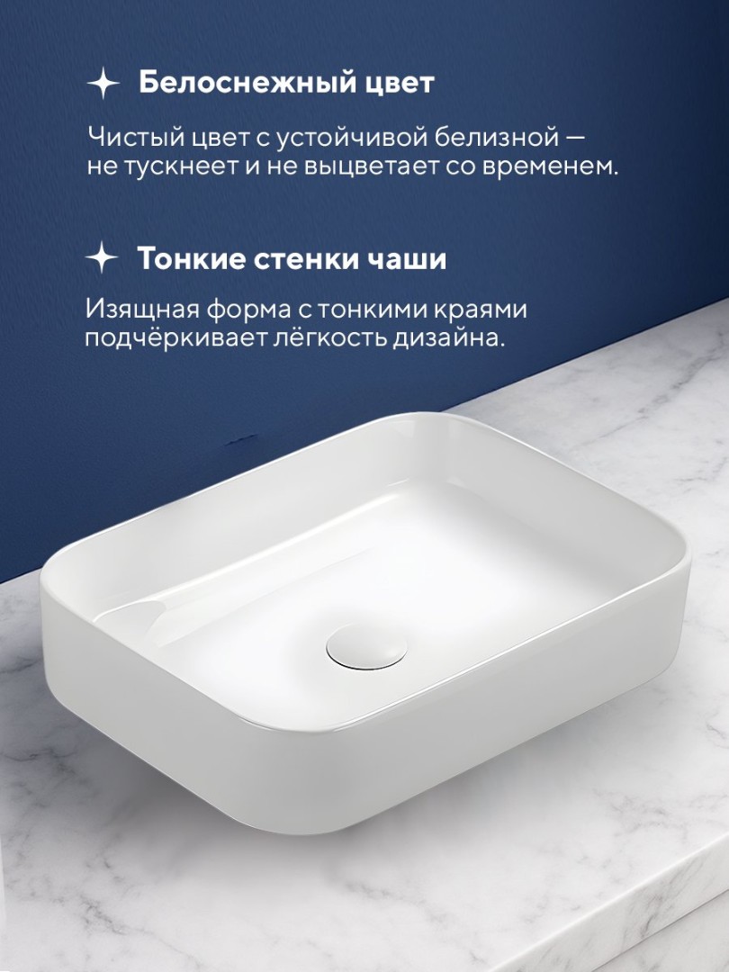 Фарфор, из которого изготовлены раковины, сохраняет свой привлекательный внешний вид даже при длительном использовании.