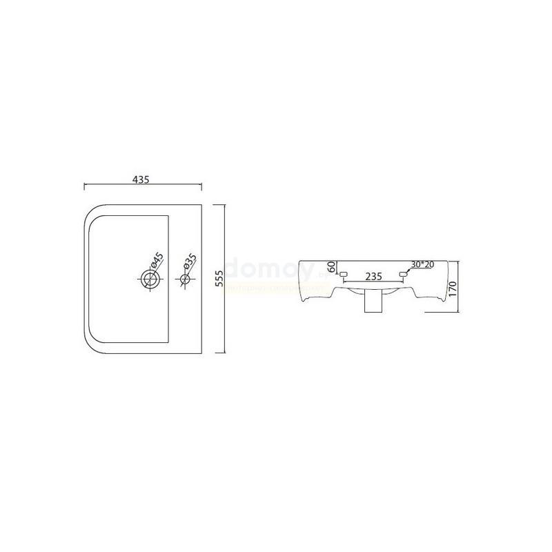 Дополнительно комплектуется: смеситель, сифон, пьедестал.