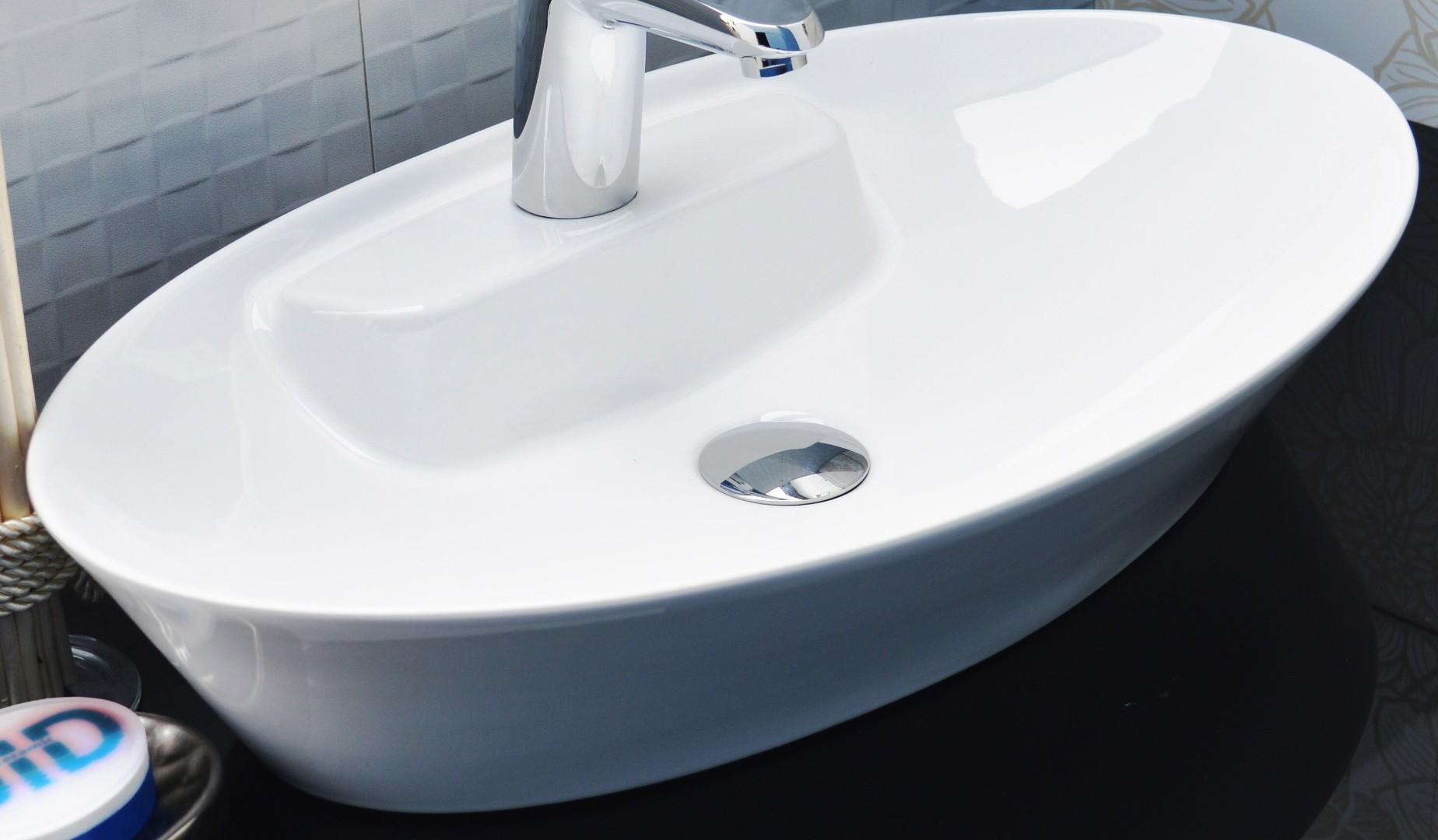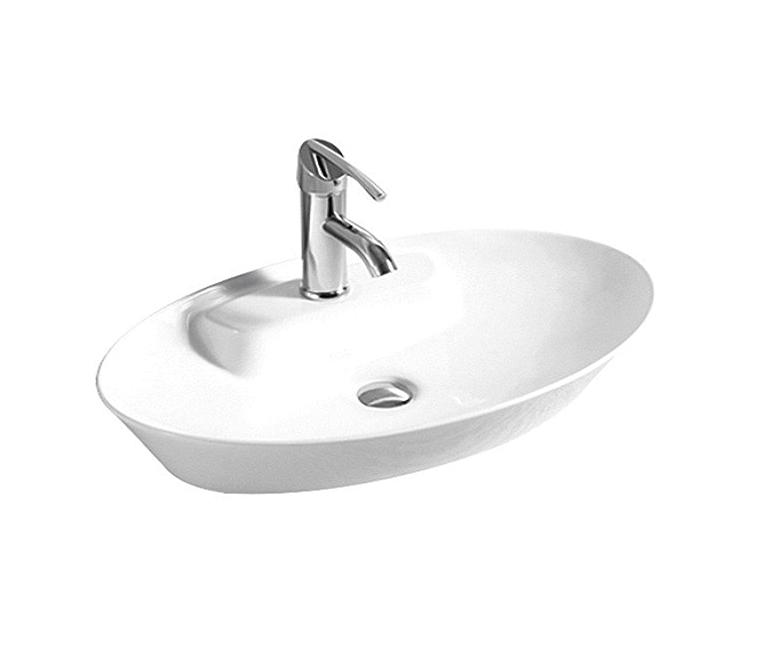 Белая овальная накладная раковина для ванной на столешницу. С отверстием для смесителя, без перелива. Выпуск (донный клапан) и сифон в комплектацию не входят, приобретаются отдельно. Диаметр слива - 45 мм.