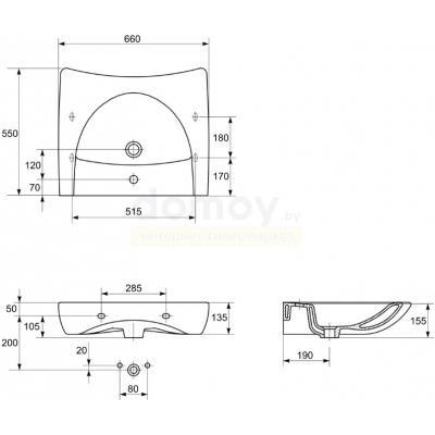 Дополнительно комплектуется: смеситель, сифон, мебель.