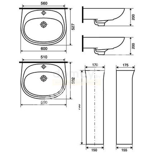 Дополнительно комплектуется: сифон, смеситель, пьедестал S-PO-MIR50/55/60-w.