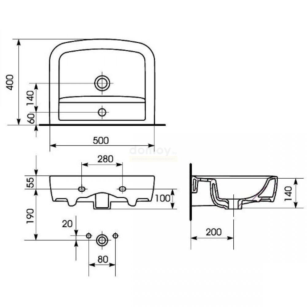 Дополнительно комплектуется: cифон, смеситель, полупьдестал, пьедестал, мебель.