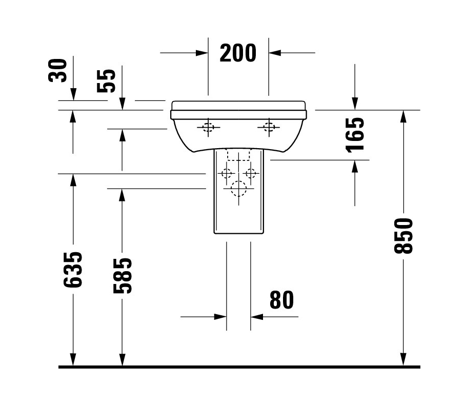 Умывальник для рук 45x32 с готовым центральным отверстием под смеситель. С переливом. Глазуровка снизу.