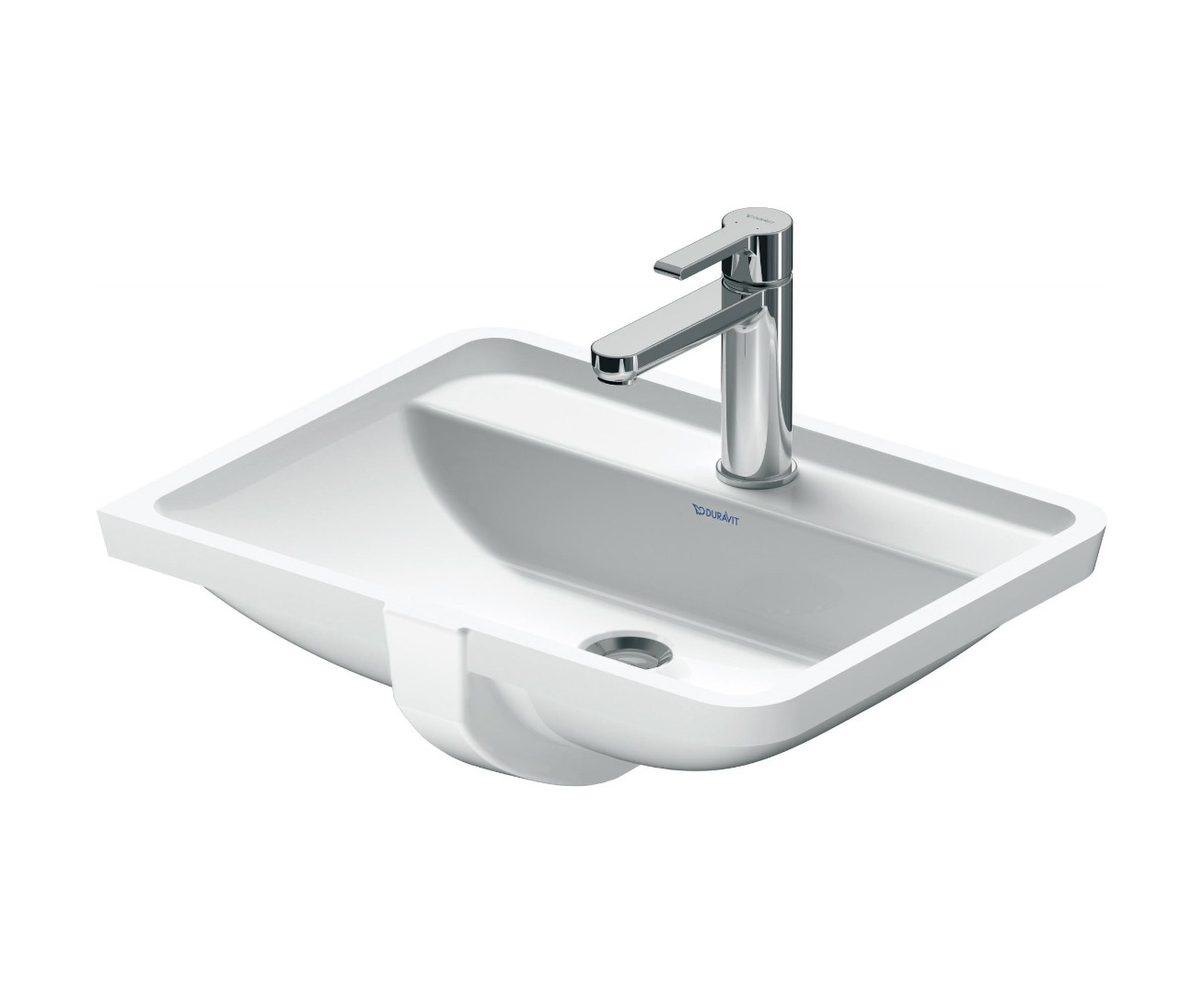 Раковина встравиваемая снизу, врезная. С 1 отверстием под смеситель. С переливом. Включая крепление для встраивания в деревянную столешницу.