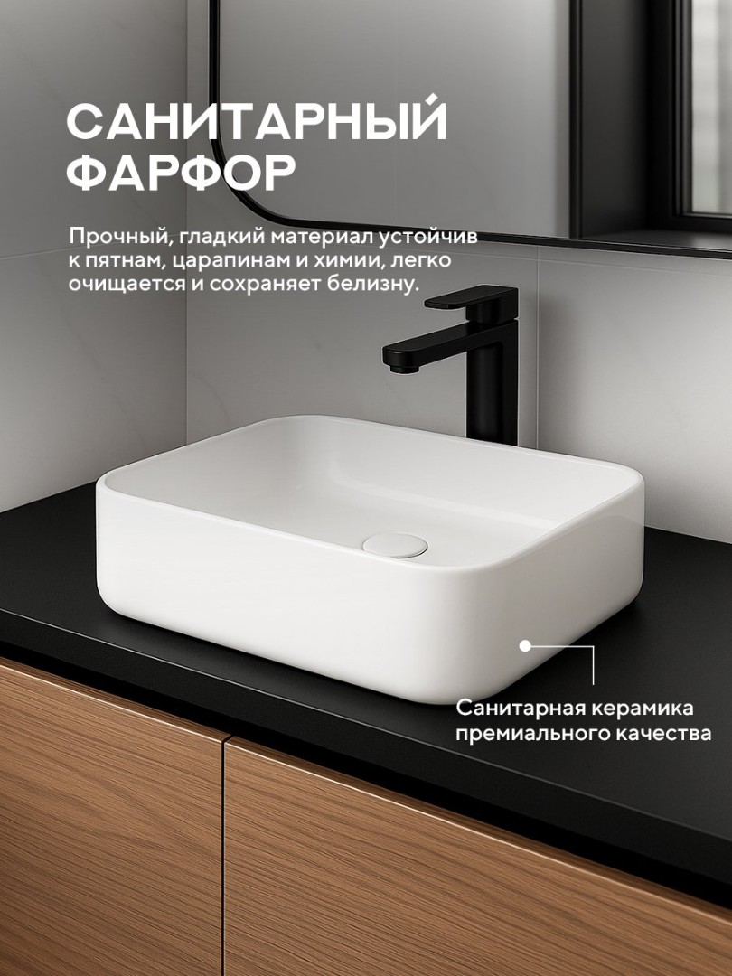 Фарфор, из которого изготовлены раковины, сохраняет свой привлекательный внешний вид даже при длительном использовании.