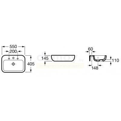 Умывальник накладной для установки на столешнице, с отверстием под смеситель.