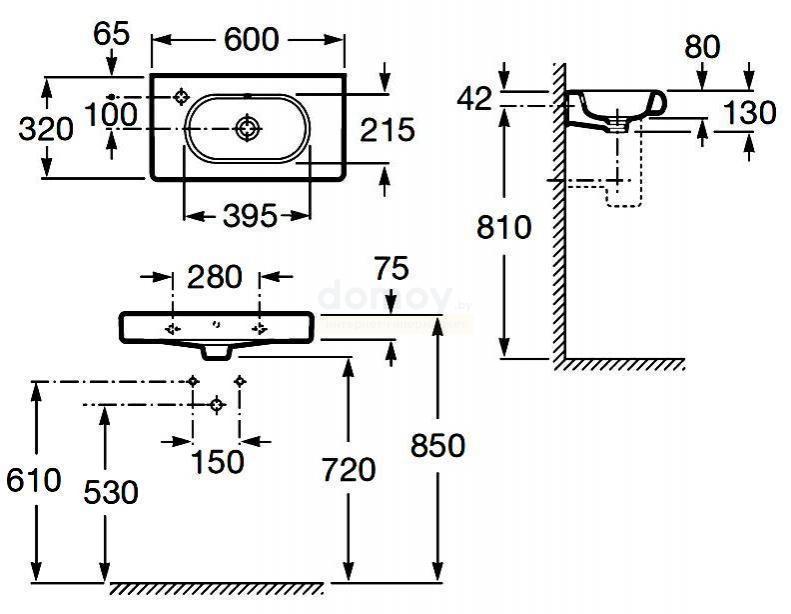 Умывальник Roca N-Meridian 60 A32724T000 настенный правый