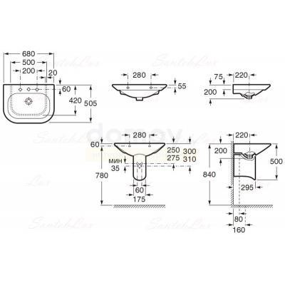 Умывальник с переливом и полкой под смеситель на одно отверстие.