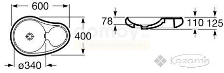 Умывальник для установки на столешницу, без отверстия для смесителя, со встроенной полкой.