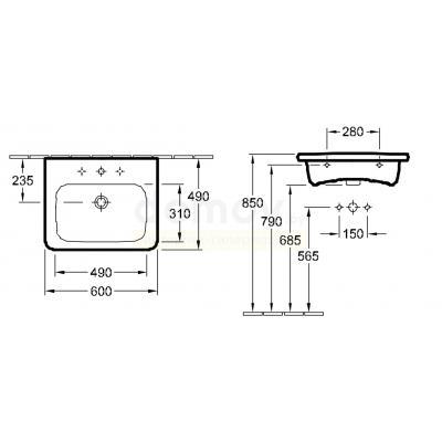 Умывальник Villeroy&Boch Vivia 60, настенный 41376001. Материал-санитарный фаянс. Цвет: 01-альпийский белый (Alpine White). Возможный цвет: R1-альпийский белый (Alpine White) с антигрязевым покрытием CeramicPlus. Изображение и цвет на мониторе могут отличаться от оригинала.