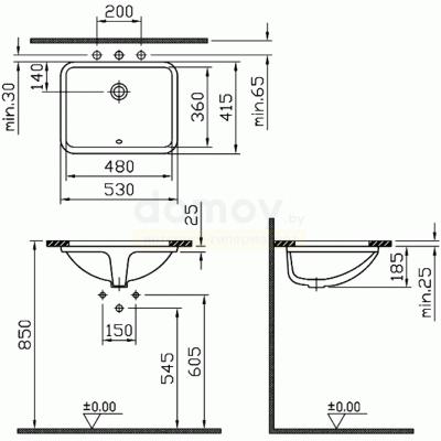 Умывальник Vitra S50 48 врезной 5339B003-0012. Высота умывальника-18.5 см. Материал-фарфор из белой глины. Отсутствуют поры на поверхности. Изображение и цвет на мониторе могут отличаться от оригинала.