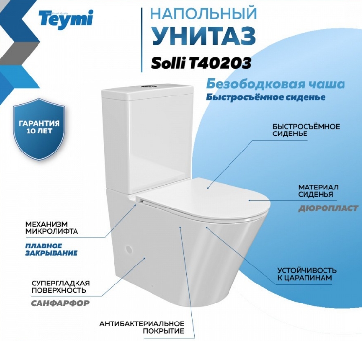 Унитаз напольный Teymi Solli безободковый, сиденье микролифт T40203