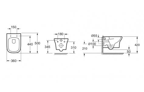 - 3930021R - Подвесной унитаз Lavinia Boho Smart N-Flash (чаша унитаза; быстросъемное дюропластовое сиденье с медленно опускающейся крышкой; комплект крепления для подвесного монтажа; декоративные колпачки)