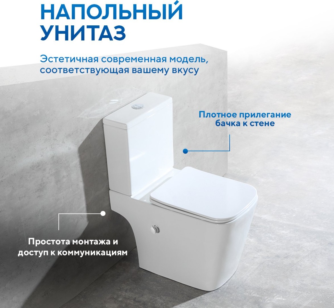 - Надёжный материал. Изготовленный из прочного материала, унитаз обладает высокой устойчивостью к царапинам и повреждениям, обеспечивая долгосрочную надёжность;