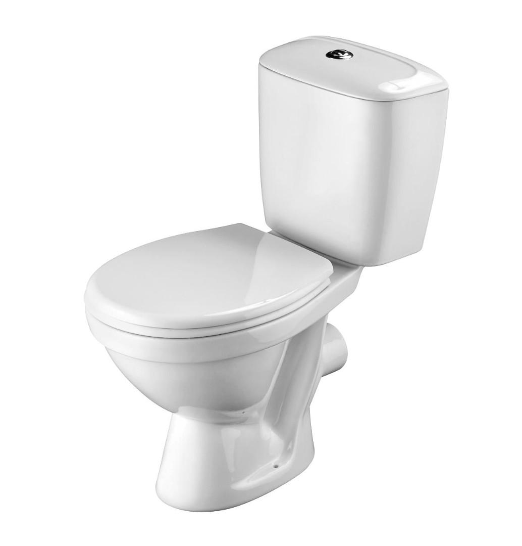 Напольный унитаз Паллада. Нижний подвод, горизонтальный выпуск. Унитаз дополнен бачком, 2-режимной сливной арматурой (3/6 л), комплектом крепления к полу и дюропластовым сиденьем.