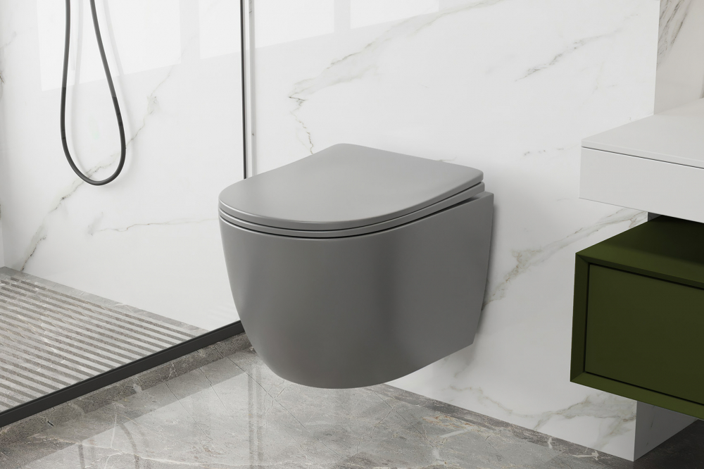 Унитаз подвесной ABBER Bequem AC1103MG, с крышкой дюропласт SoftClose