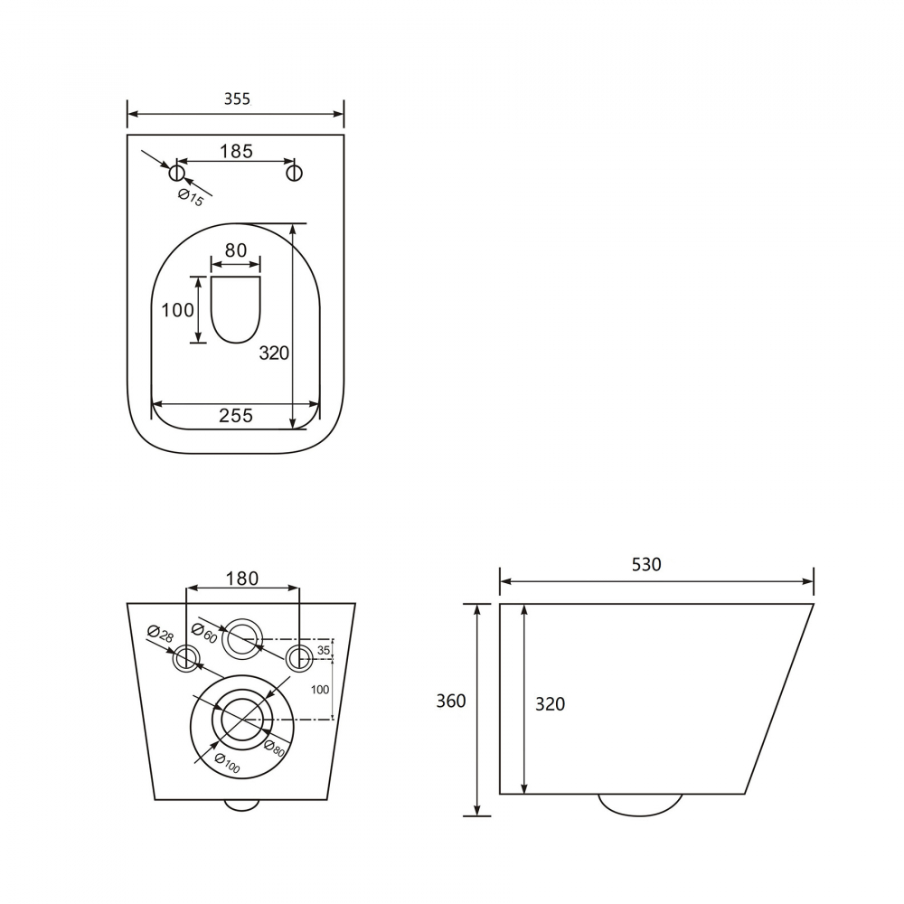 Унитаз подвесной ABBER Rechteck AC1201T, с крышкой дюропласт SoftClose
