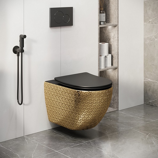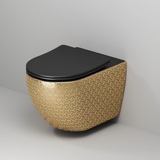 Подвесной унитаз. Размер: 550х365х395 мм. Цвет золото с чёрным.