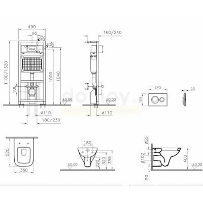 Унитаз подвесной с инсталляцией Vitra S20, с крышкой