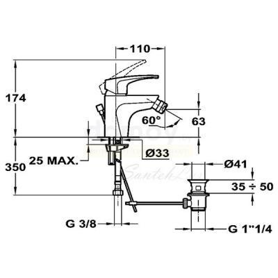 Однозахватный смеситель с керамическим картриджем и гибкой подводкой 1/2.