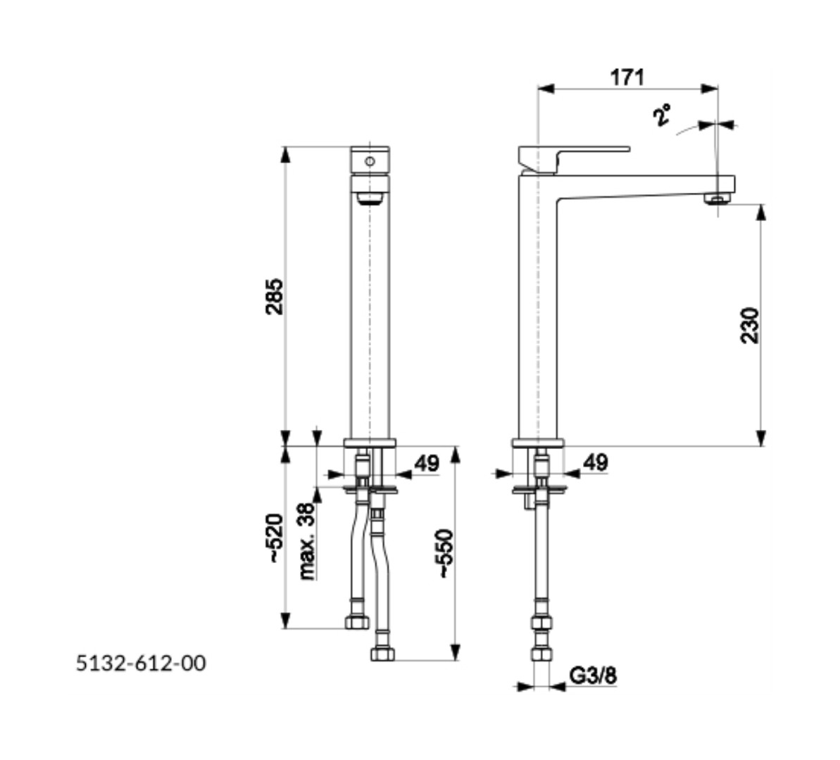 - Длина излива: 171 мм;