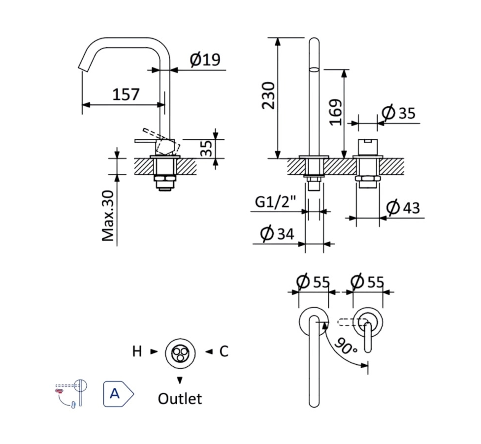 Смеситель для умывальника Bruma Leaf 167 002 4SR Sunrise