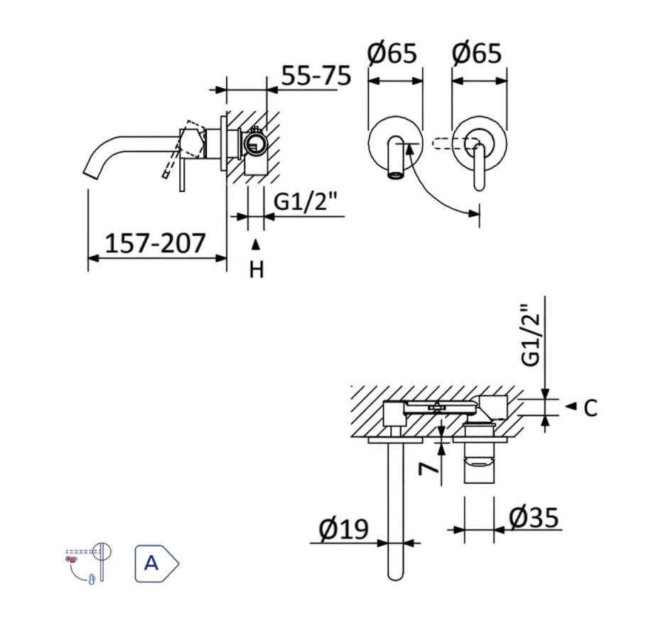 Внешняя часть смесителя для раковины Bruma Leaf E167 012 0MM Morning Mist