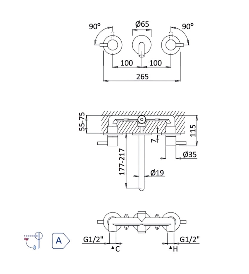Внешняя часть смесителя для раковины на 3 отверстия Bruma Lusitano E107 010 Chrome
