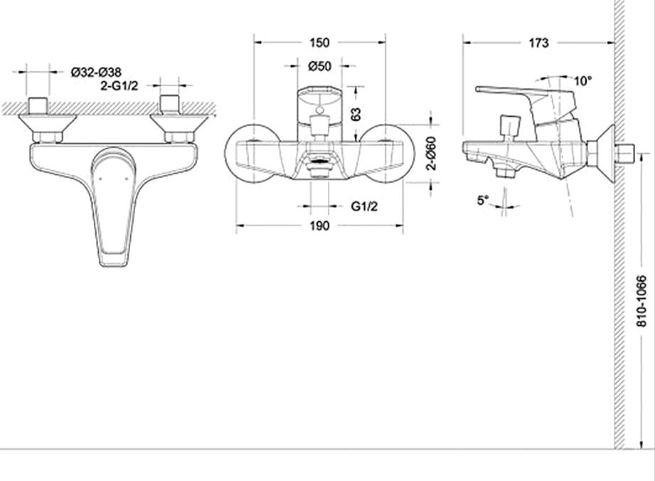 Смеситель для ванны Bravat Line F65299C-1, настенный, из латуни сорта А+, без душевого комплекта.