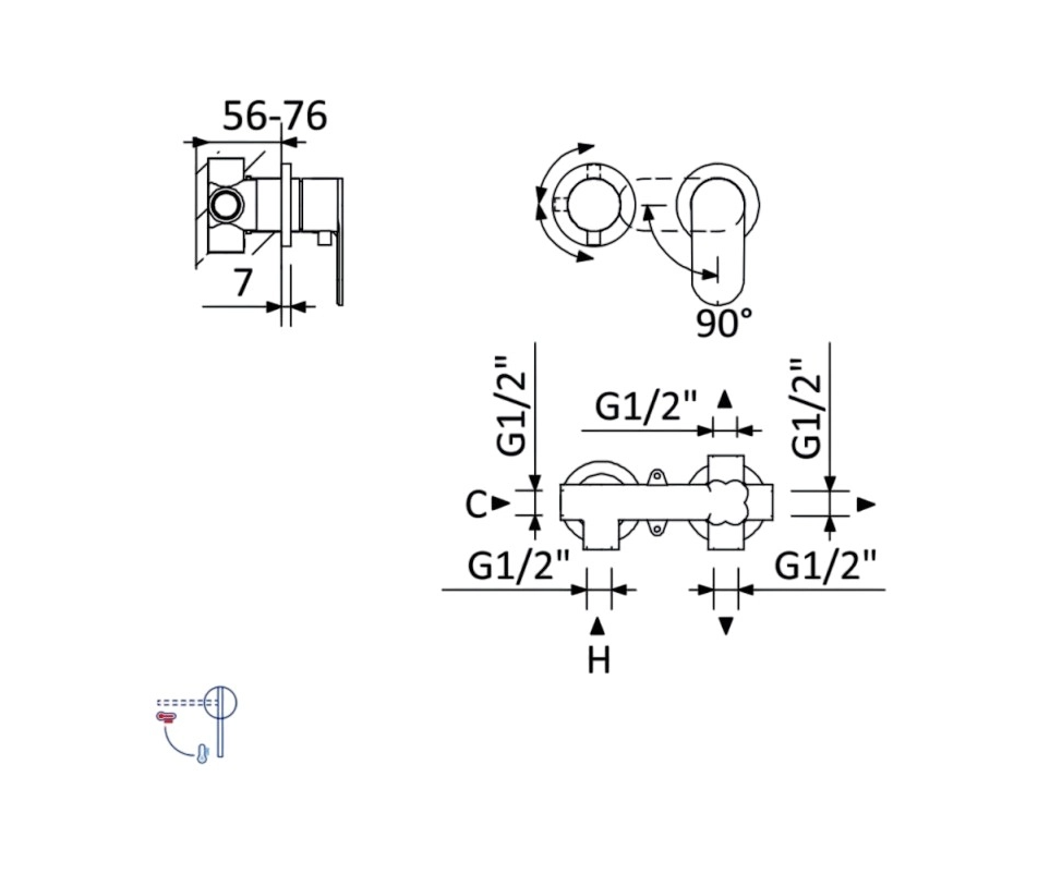 Смеситель скрытого монтажа на 2 отверстия с 3 выходами Bruma Coral 194 140 0NS Night Sky