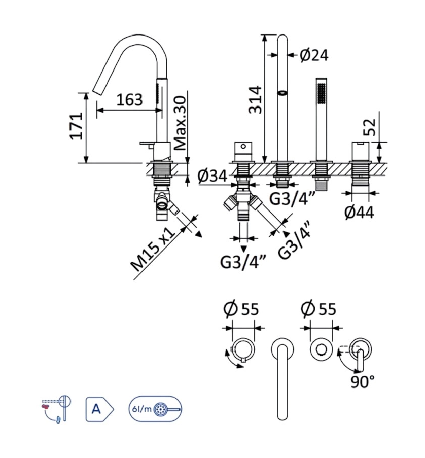Смеситель для ванны Bruma Leaf 167 990 1MM Morning Mist