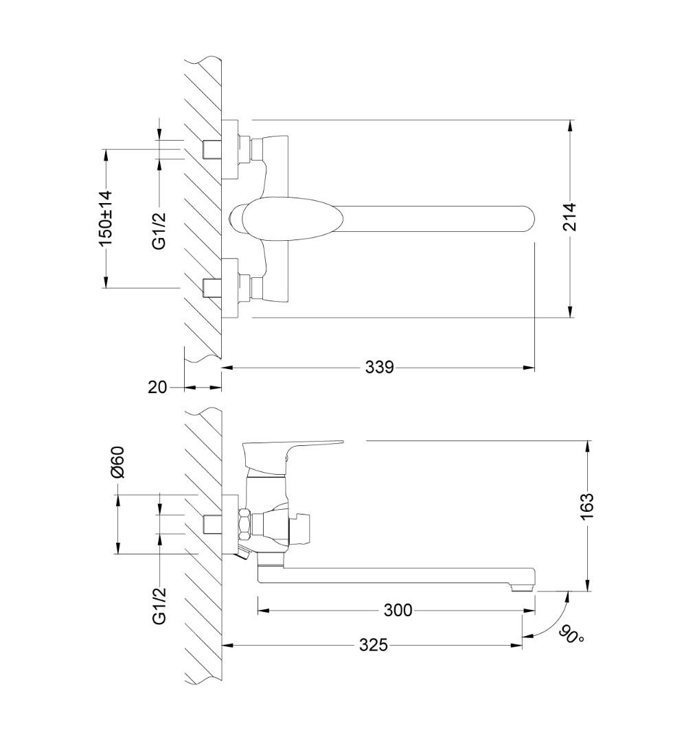 - Аксессуары в комплекте: шланг 1,5 м, настенное поворотное крепление, 1-функциональная лейка Ø100 мм;